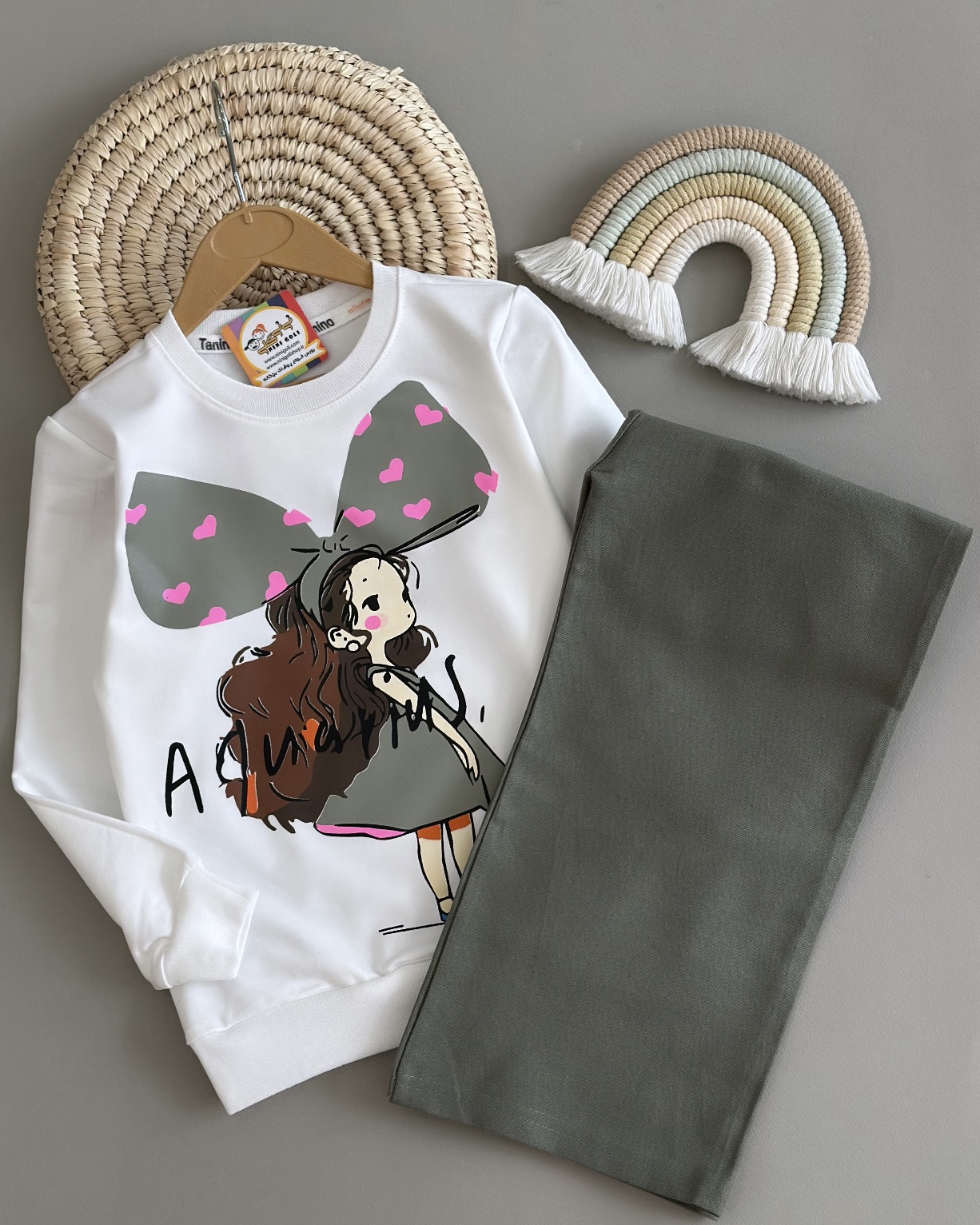 بلوز و شلوار دخترک پاپیونی کد ۳۰۹۵ سایز۴۵/۵۰ مناسب ۴سال تا ۷ سال