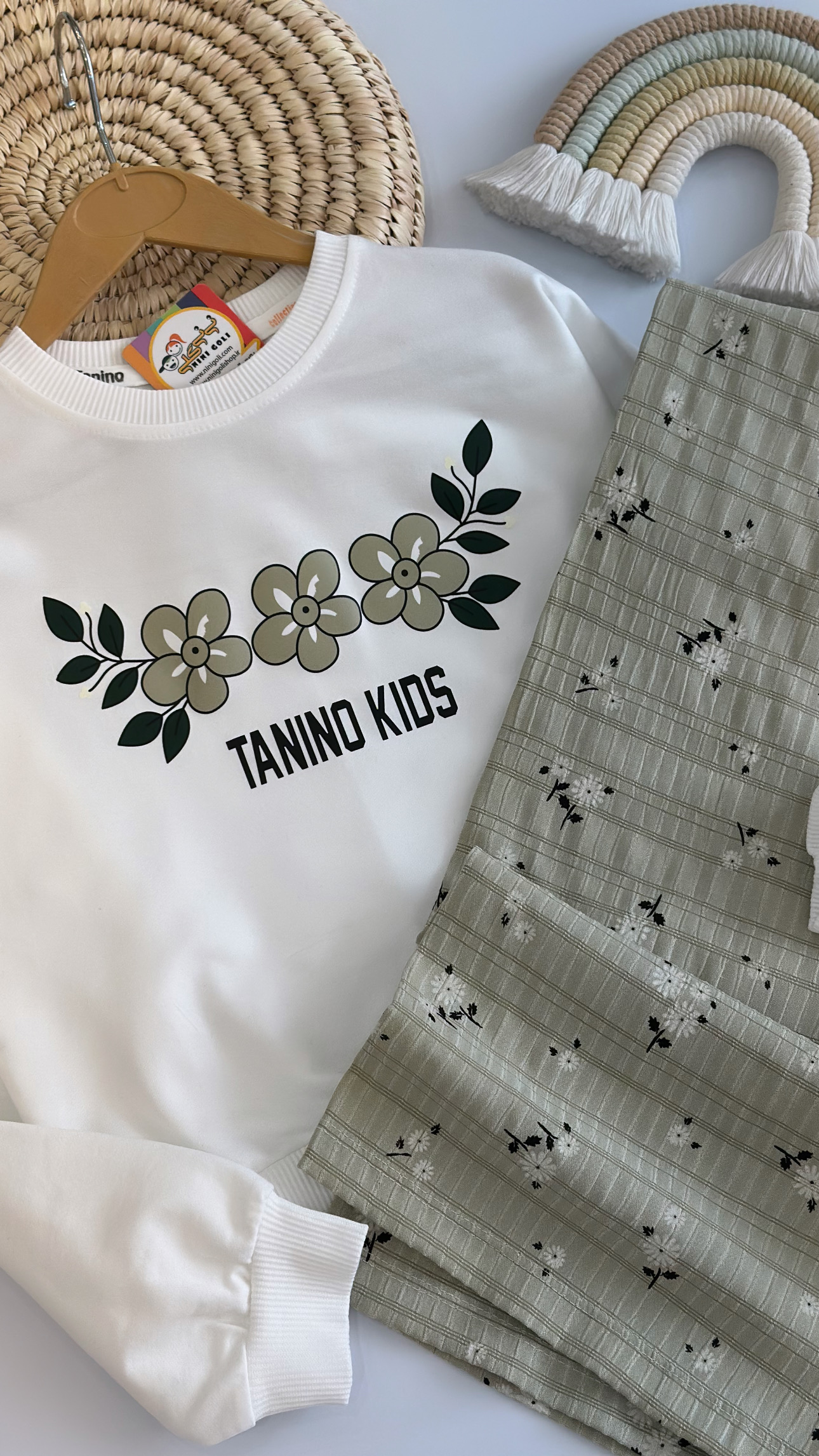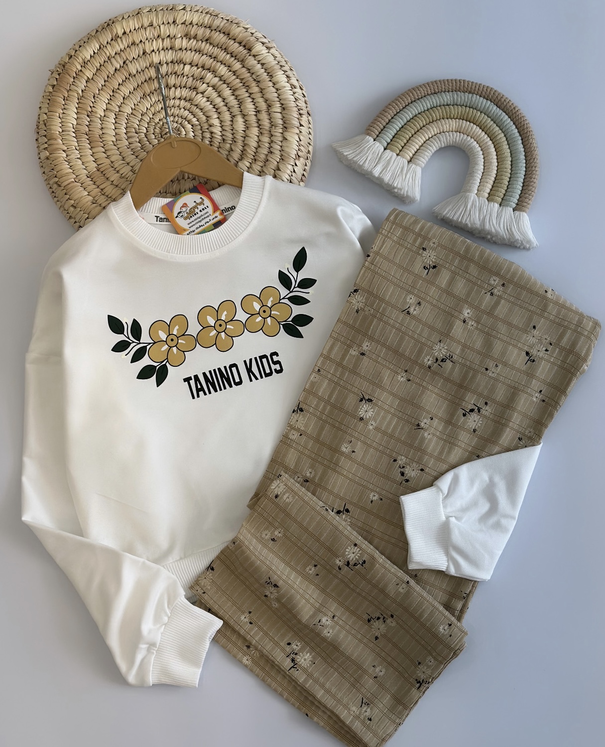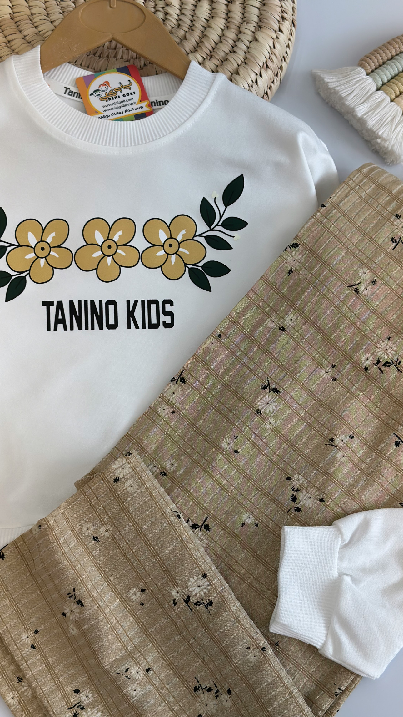 کراپ و شلوار سه گل کد ۳۱۰۷ سایز۵۵/۶۰ مناسب ۷ سال تا ۱۰سال