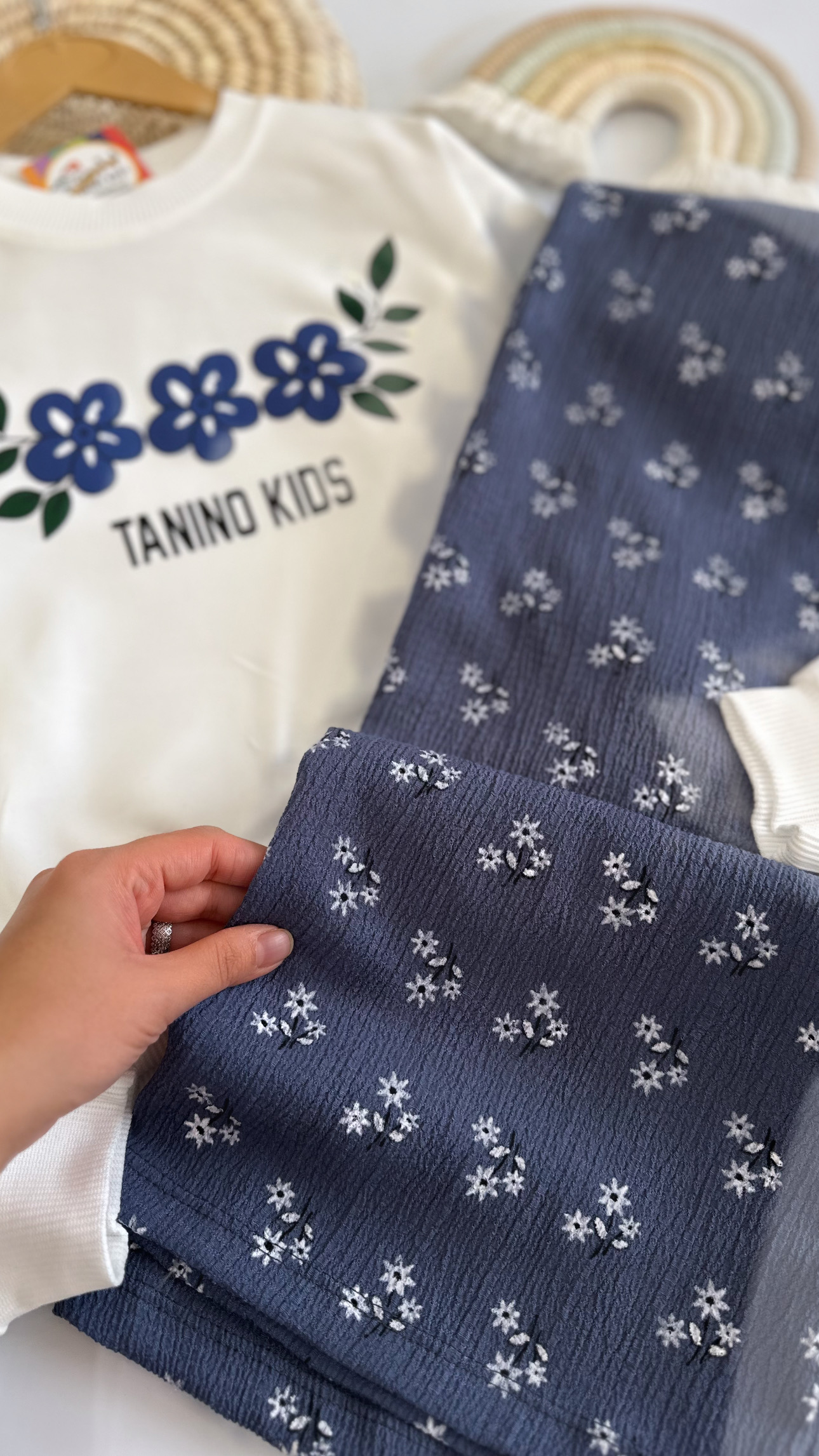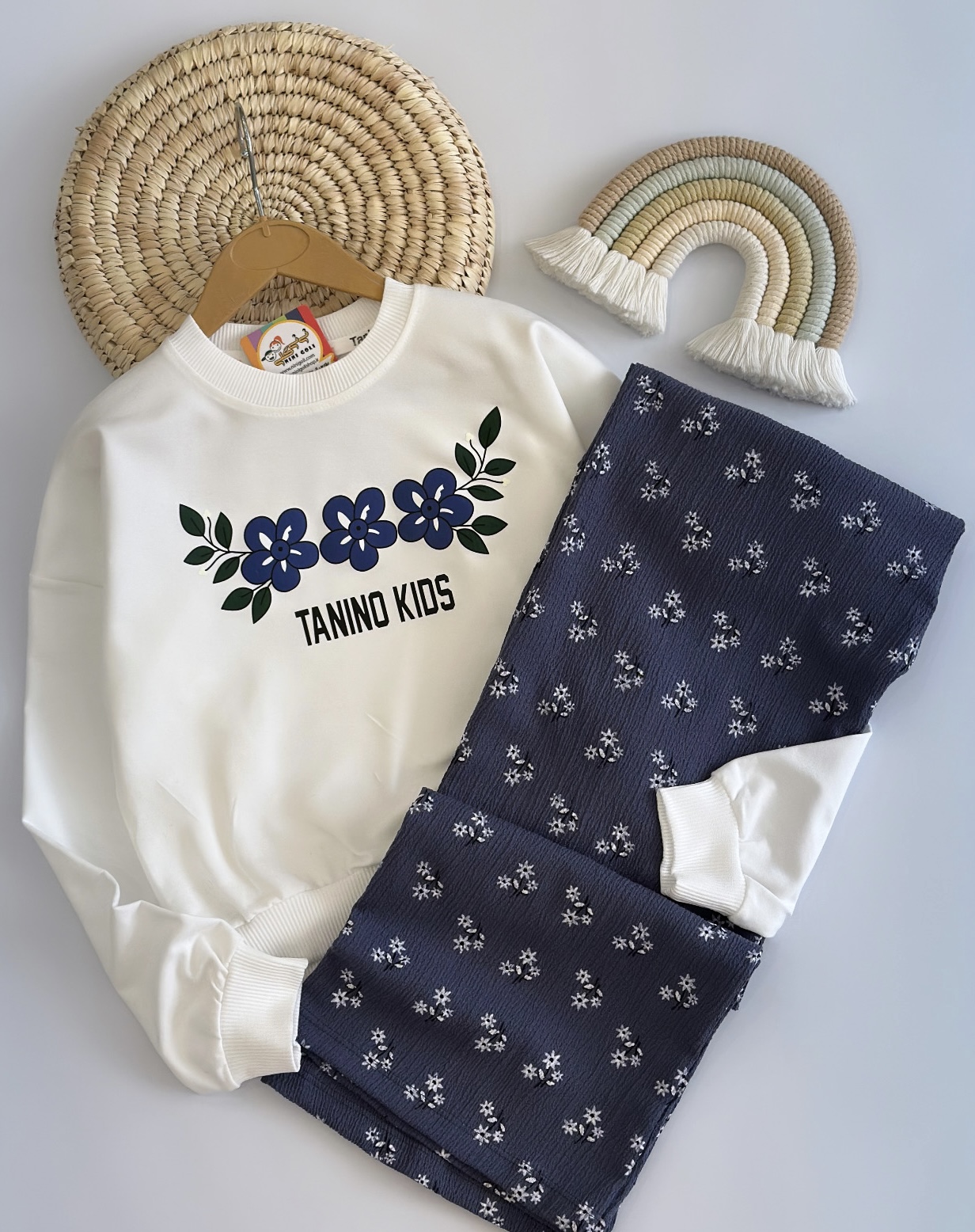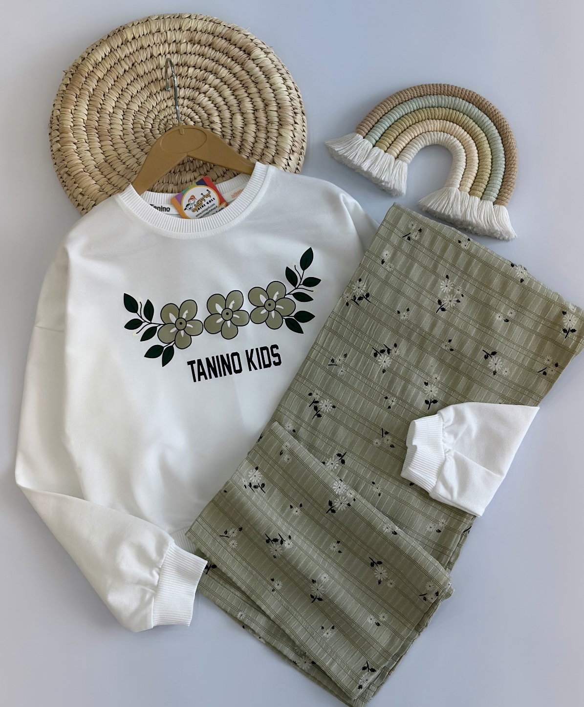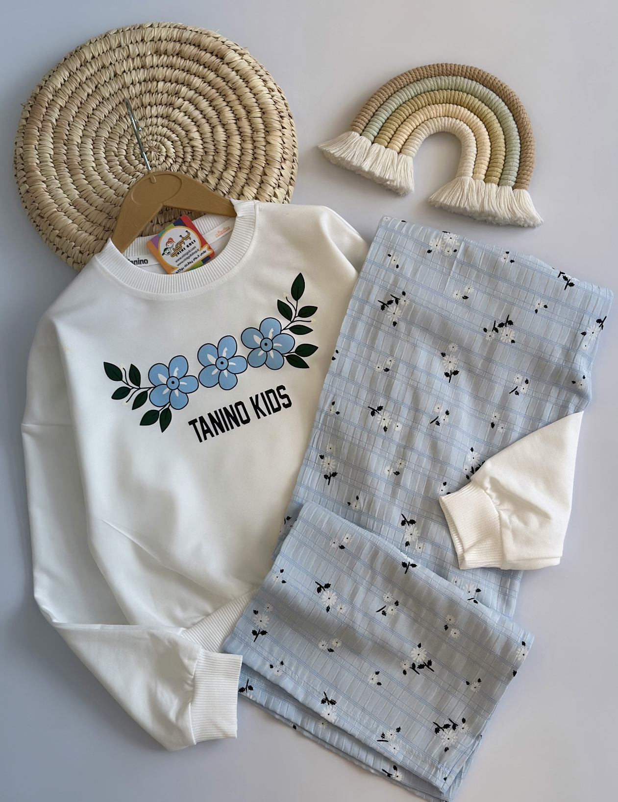 کراپ و شلوار سه گل کد ۳۱۰۷ سایز۵۵/۶۰ مناسب ۷ سال تا ۱۰سال