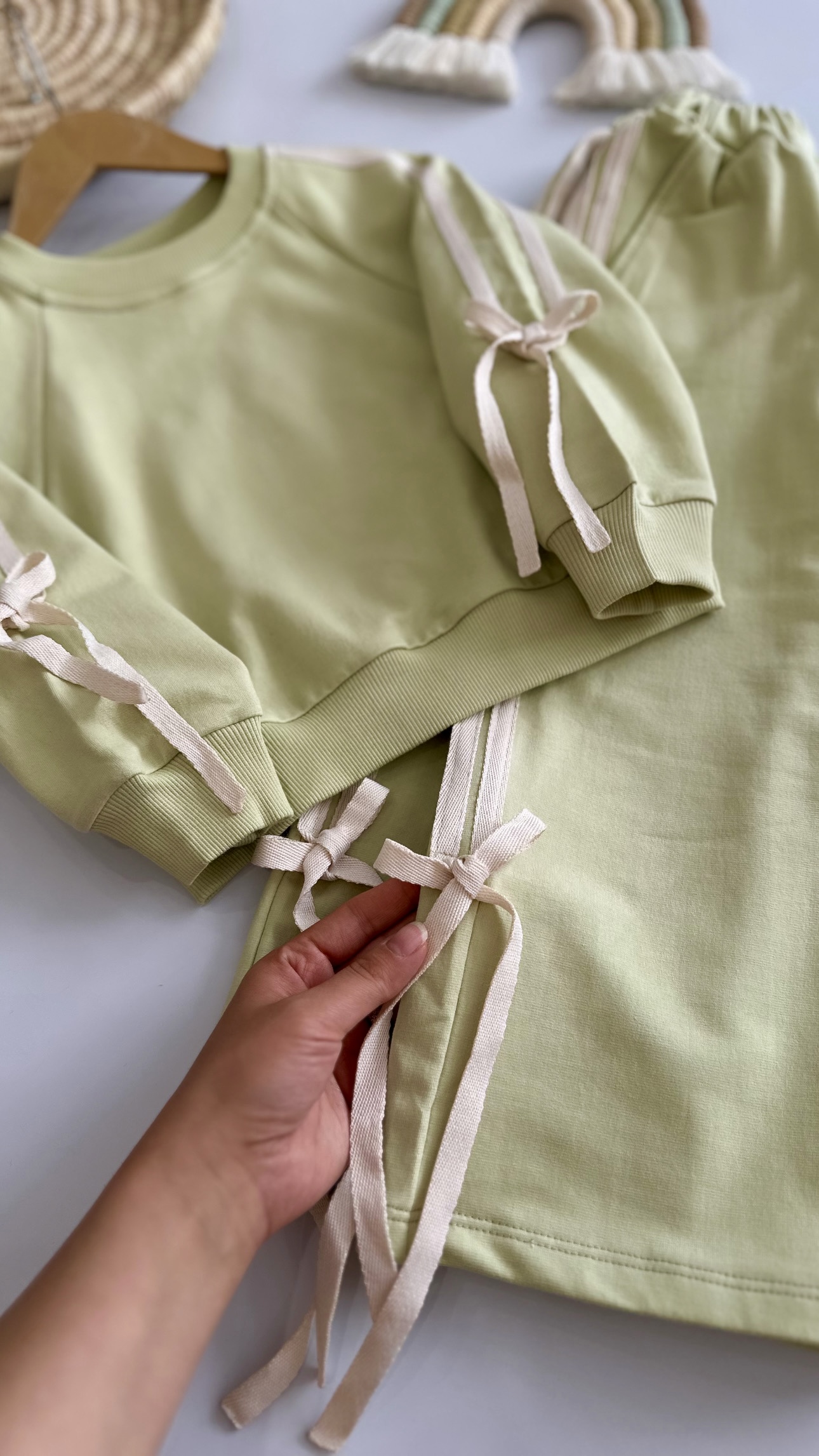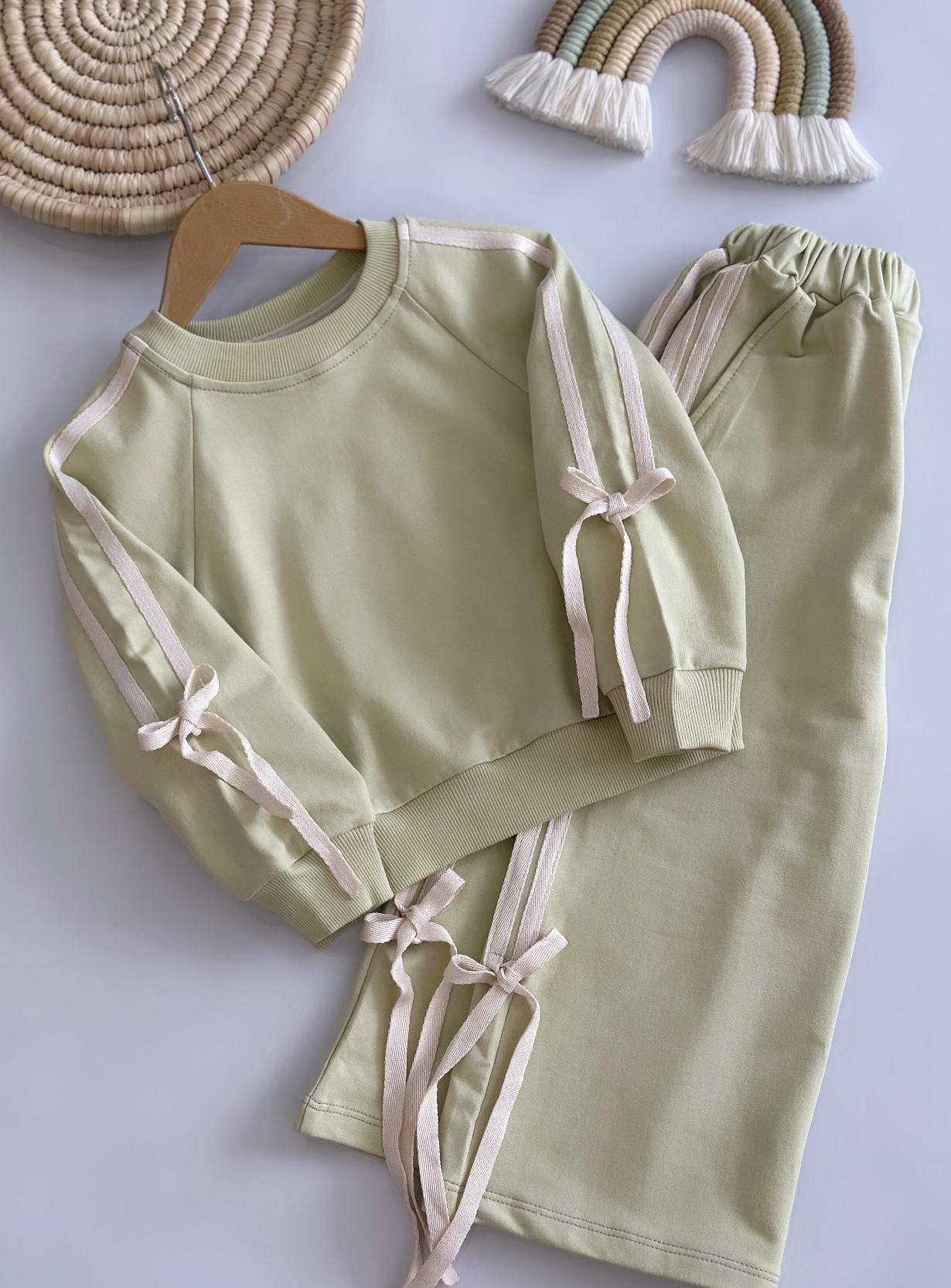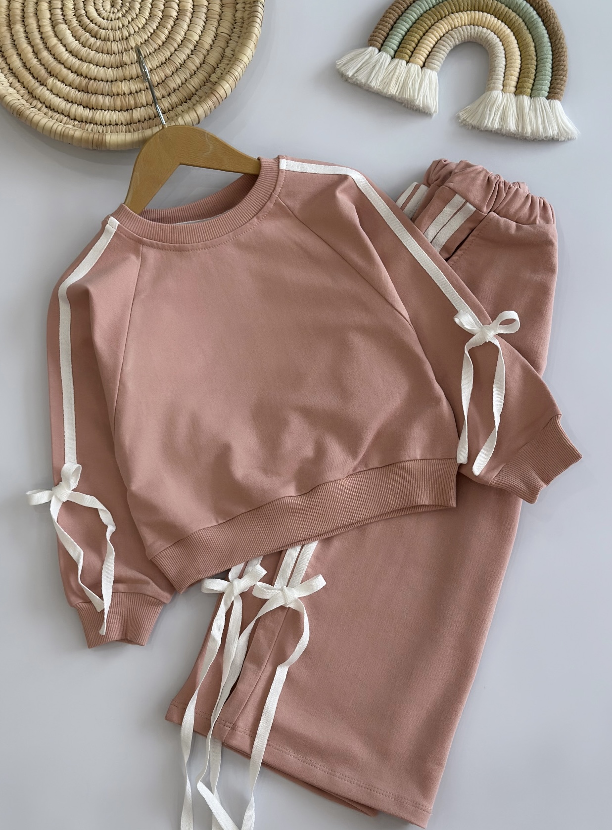 کراپ و شلوار بندی پاپیونی کد۳۱۲۸ سایز۴۰/۴۵/۵۰/۵۵ مناسب ۲سال تا ۹ سال جنسش دورس دونخ با کیفیته