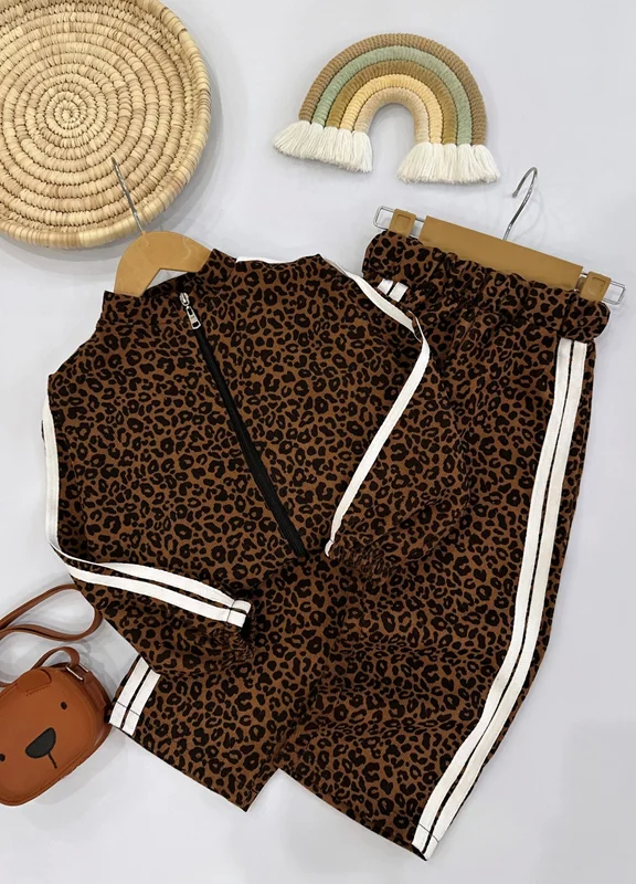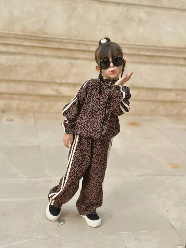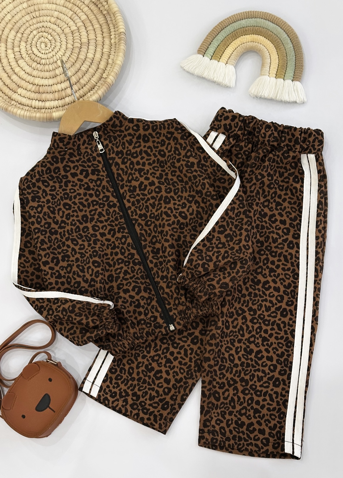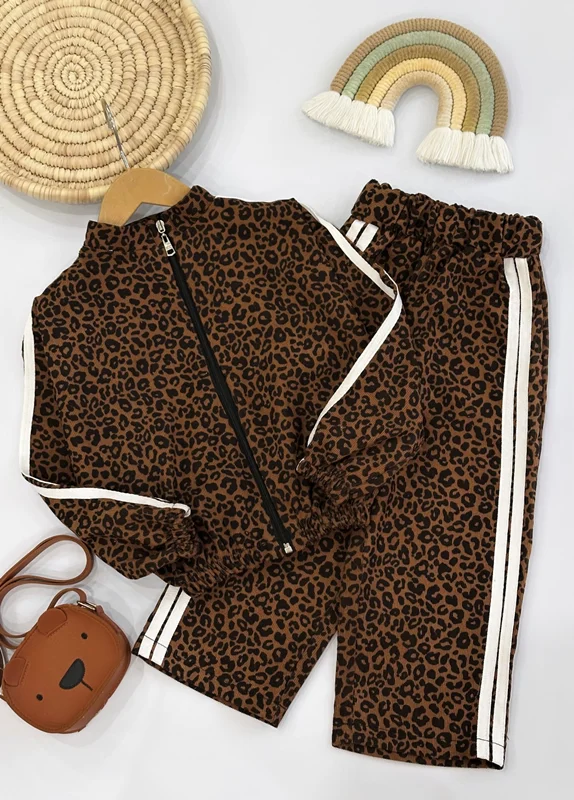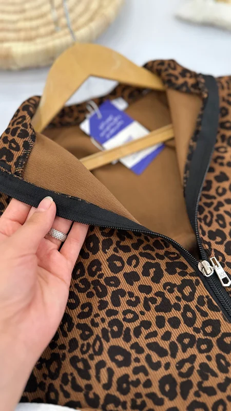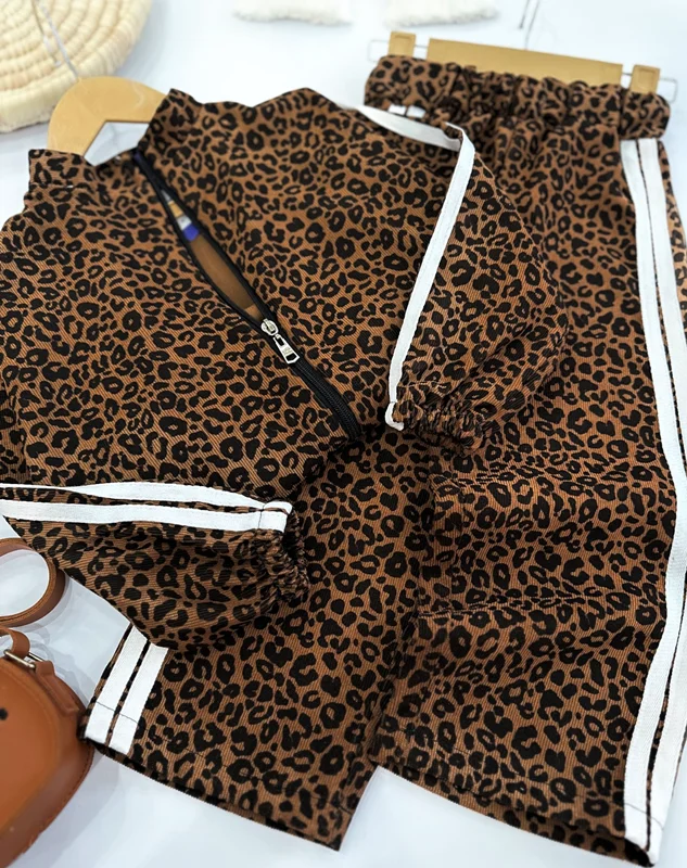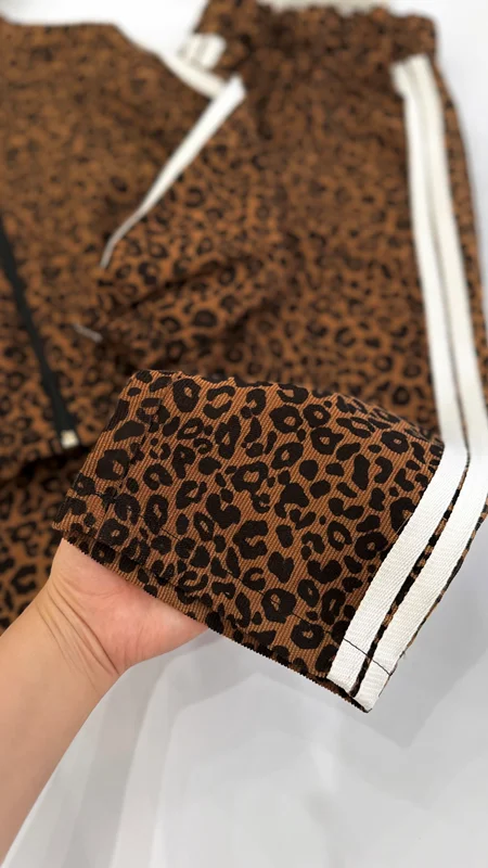 سویشرت و شلوار پلنگی کد ۳۰۳۱ سایز۴۰/۴۵/۵۰/۵۵/۶۰ مناسب ۲سال تا ۱۰ سال جنسش مخمل کبریتی با کیفیته رنگ قهوه ایش یه پرده تیره و روشن داره