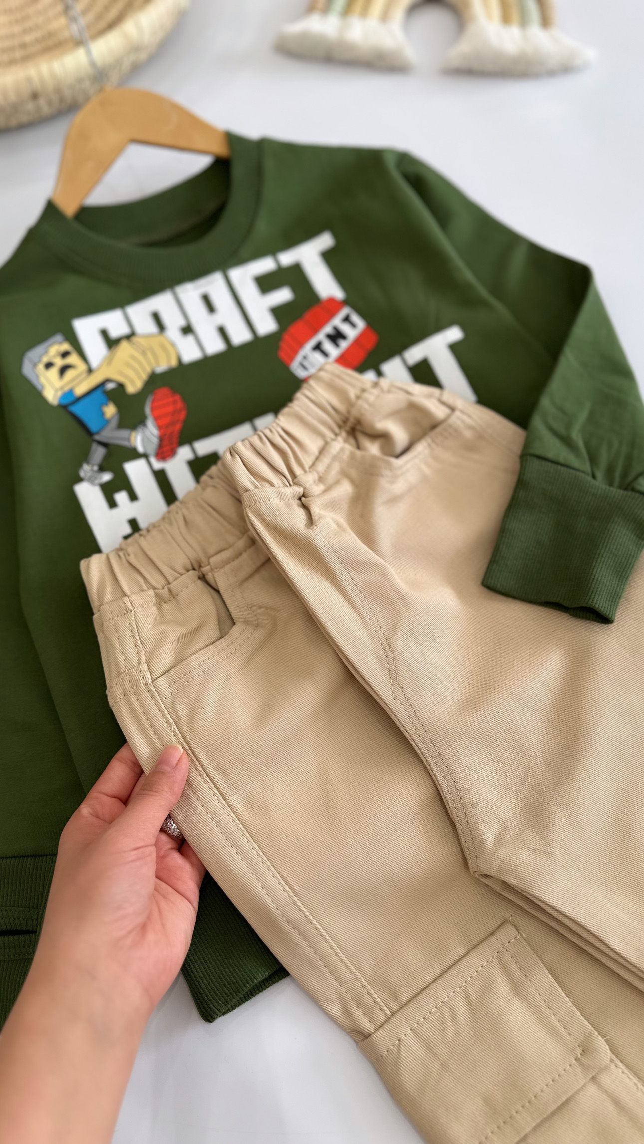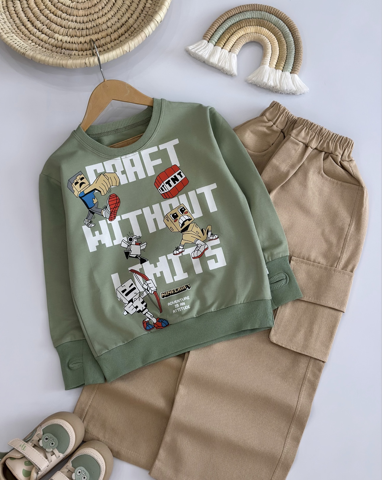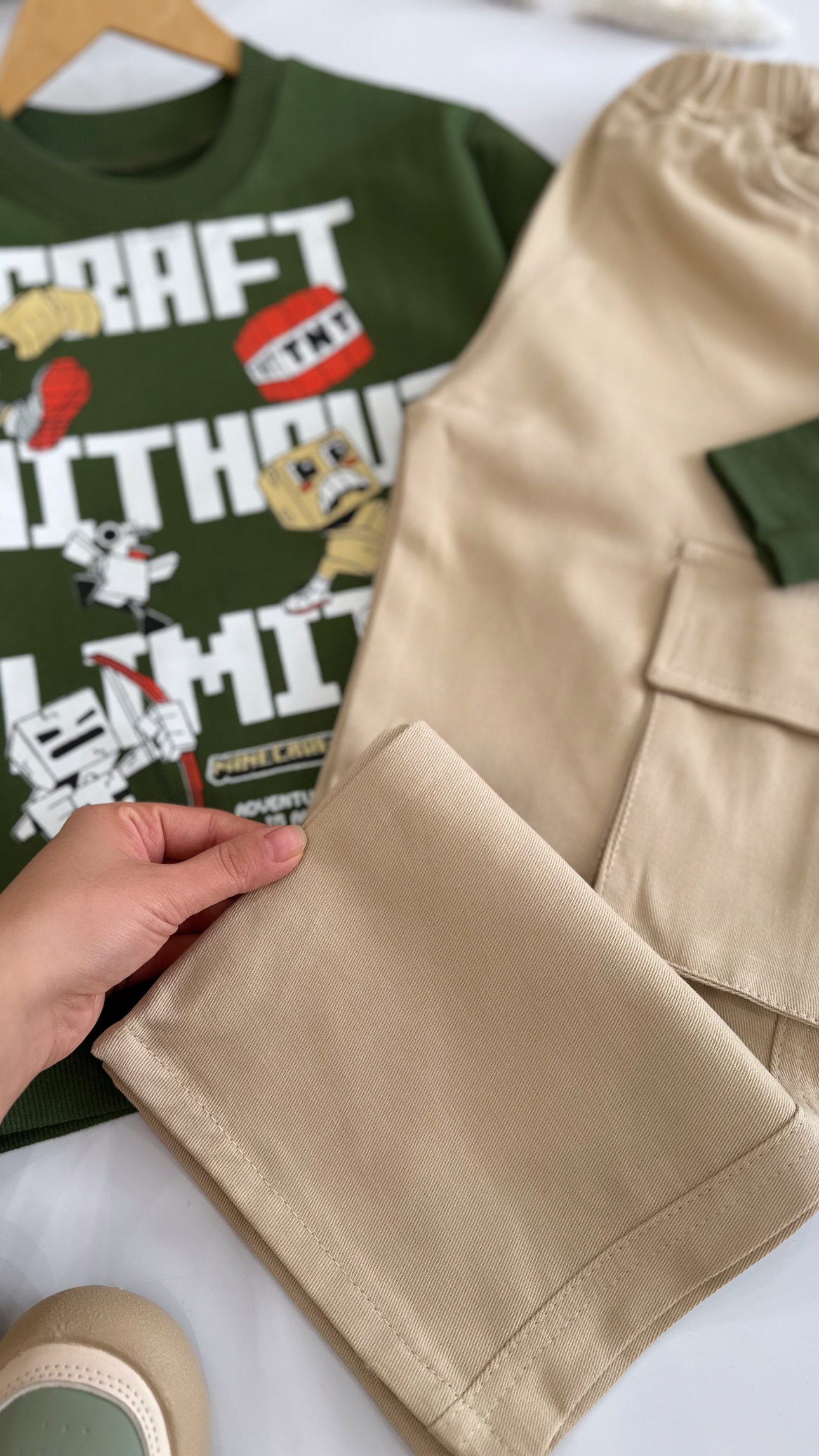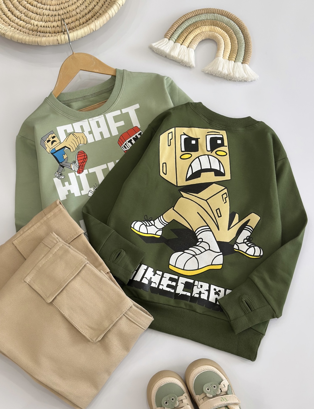 دورس و شلوار کتان ماینکرفت کد ۳۱۶۳ سایز۴۵/۵۰/۵۵/۶۰ مناسب ۴سال تا ۱۰ سال بلوز دورس و شلوار کتان