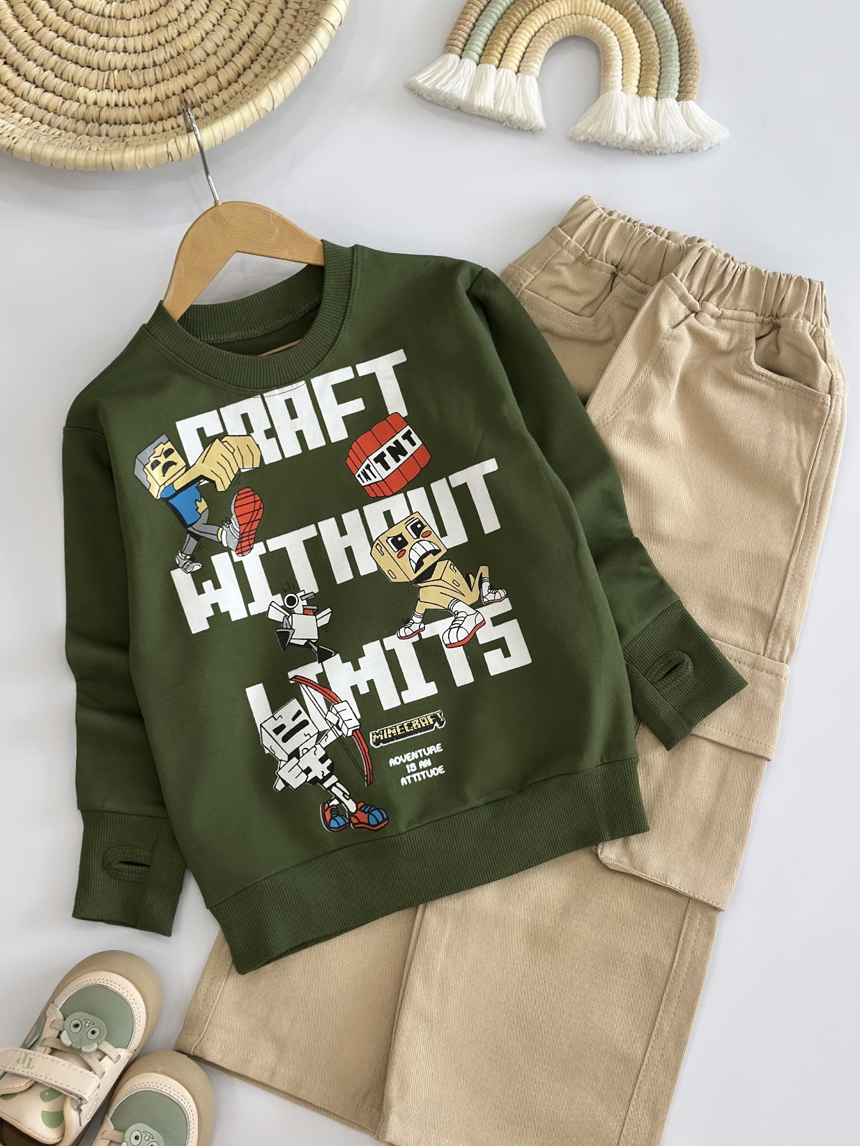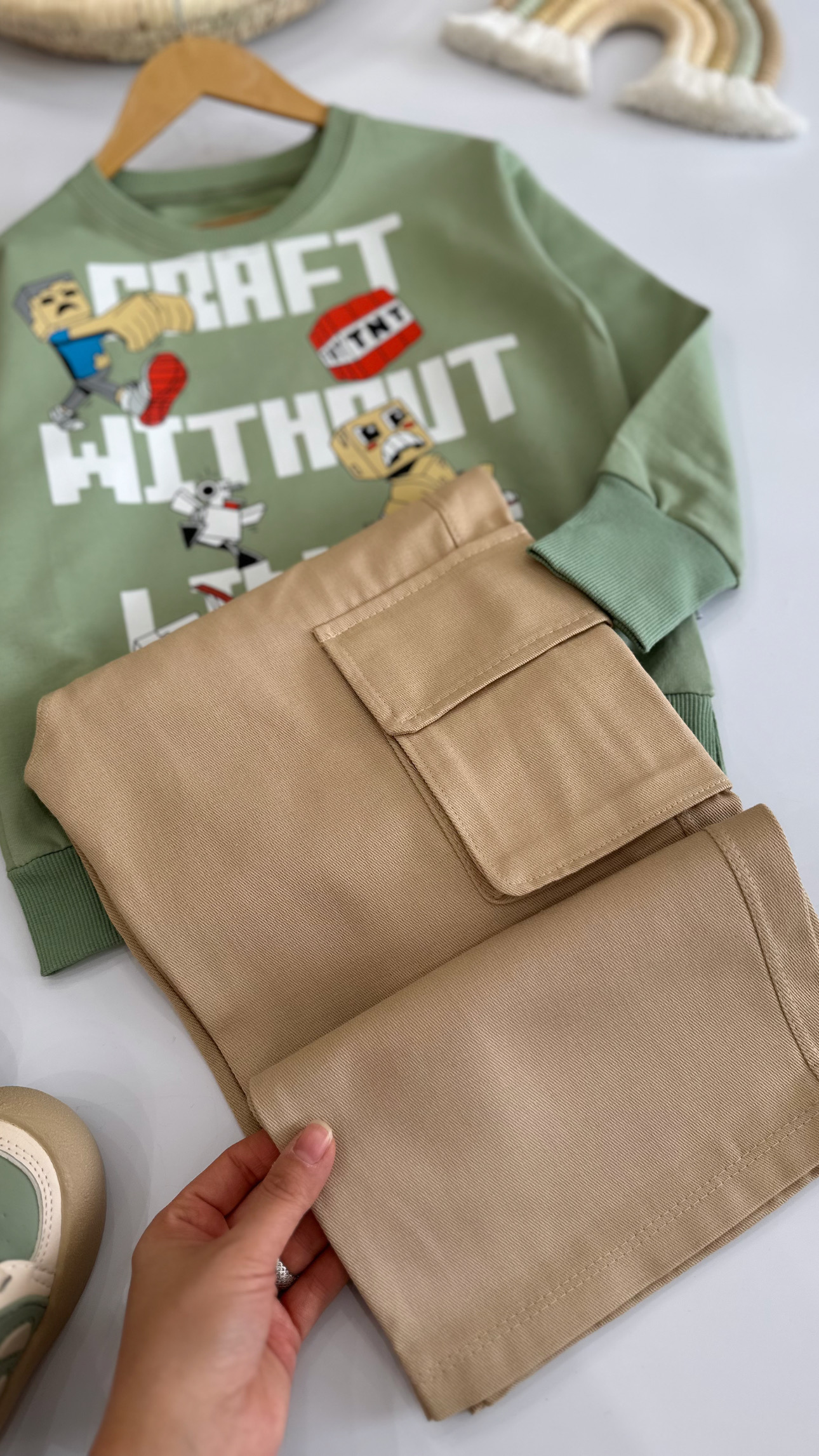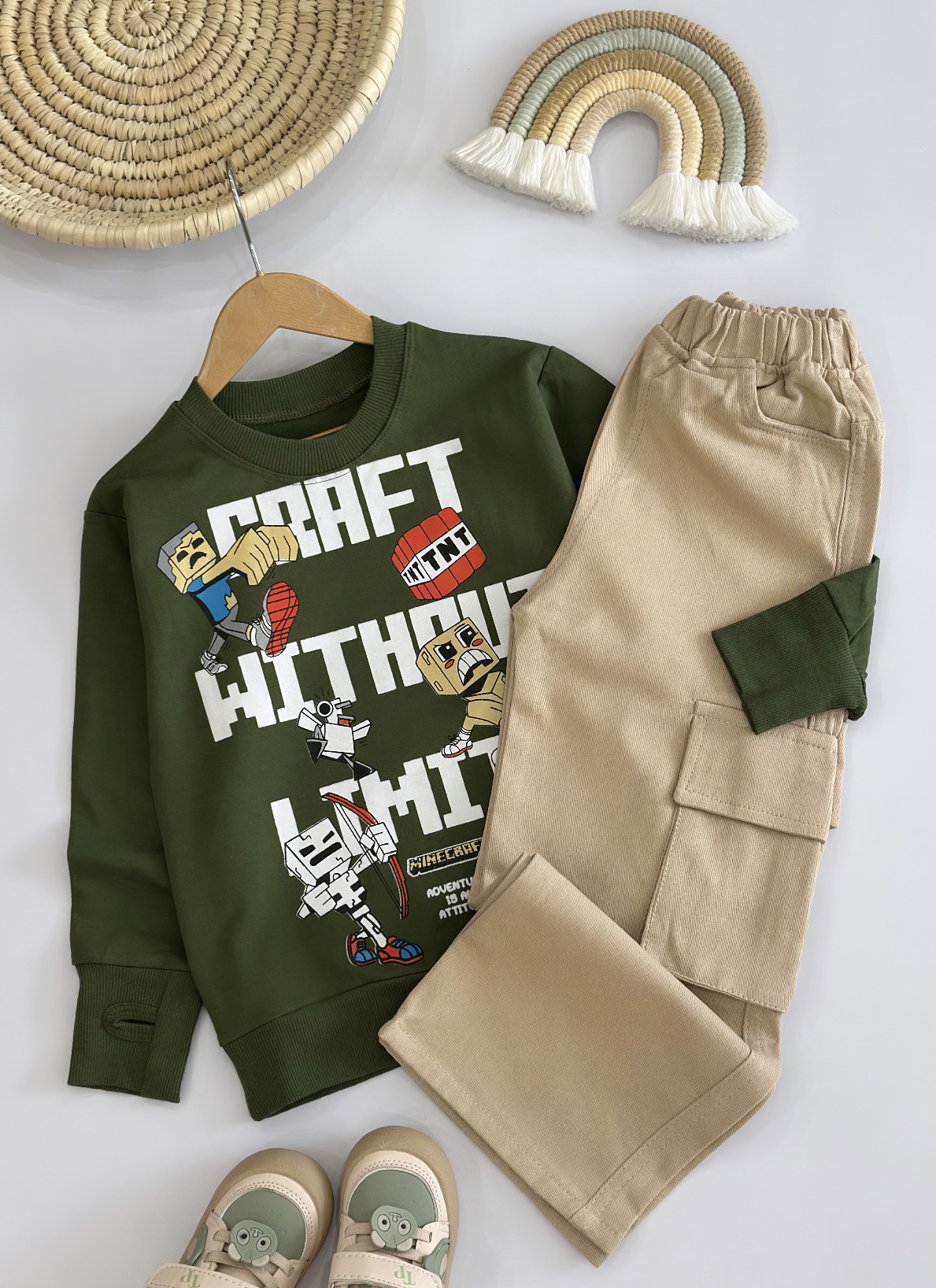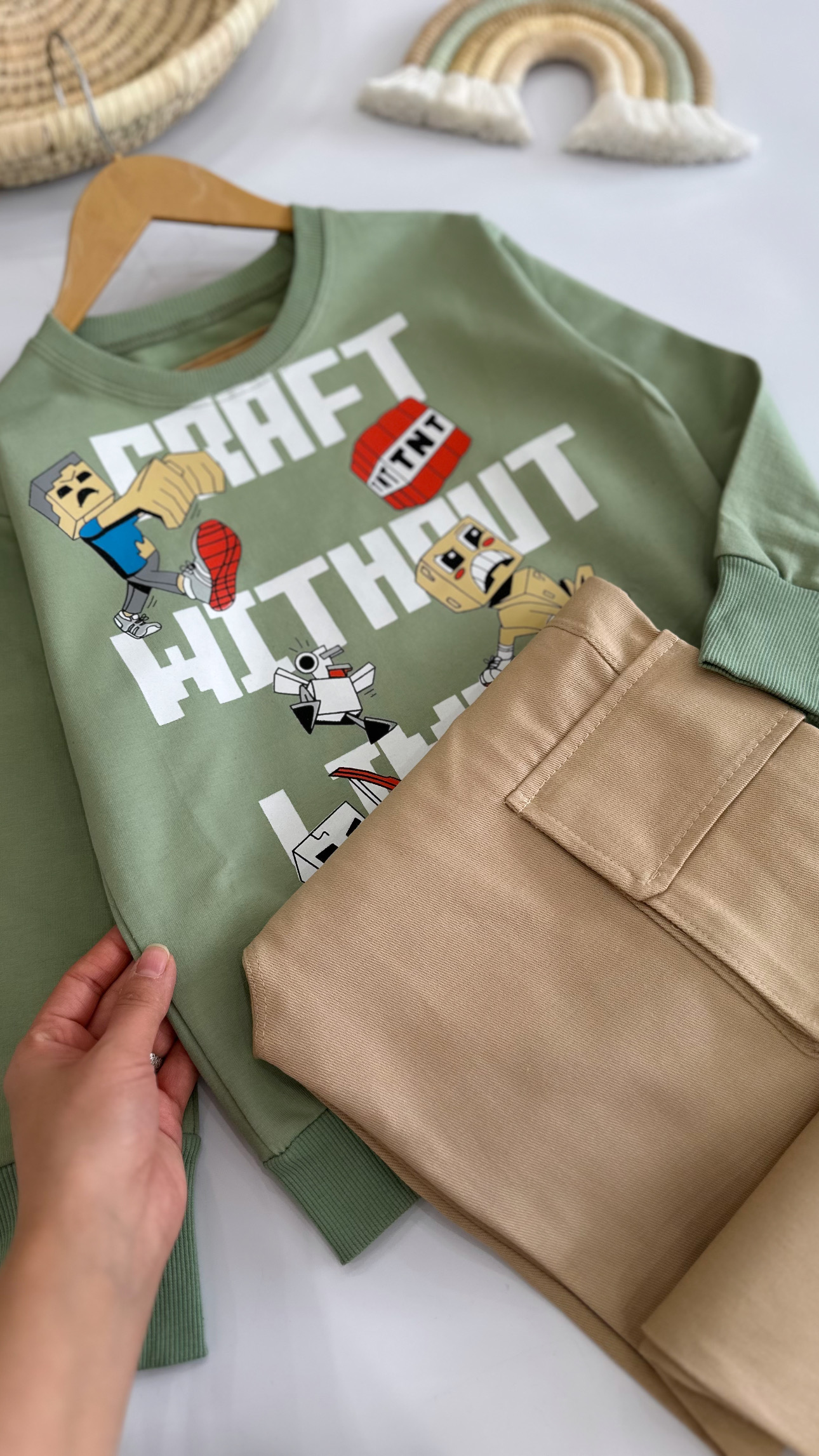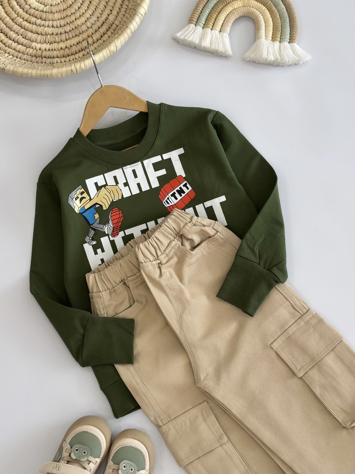 دورس و شلوار کتان ماینکرفت کد ۳۱۶۳ سایز۴۵/۵۰/۵۵/۶۰ مناسب ۴سال تا ۱۰ سال بلوز دورس و شلوار کتان
