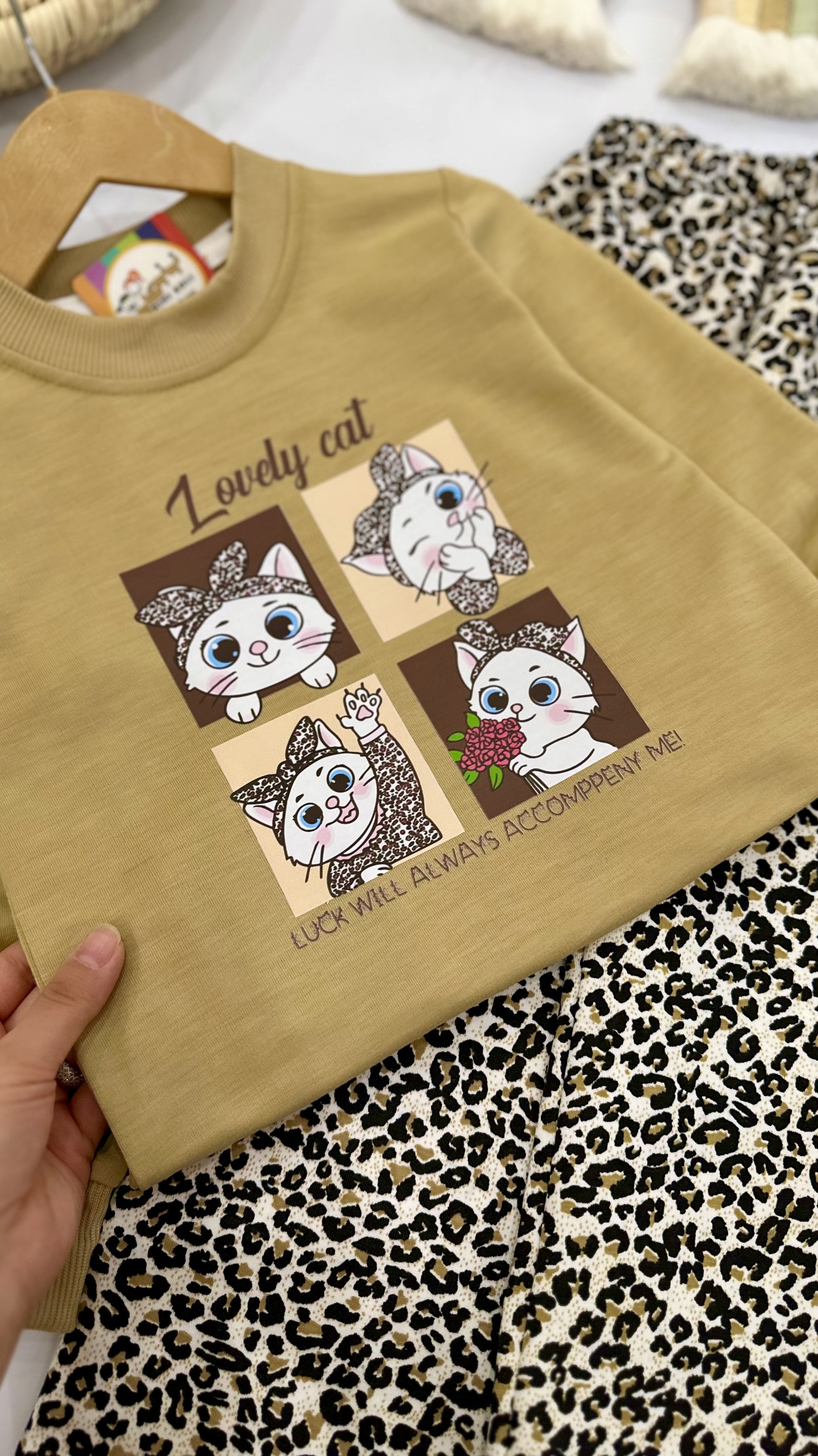 بلوز و شلوار گربه پلنگی کد ۳۱۶۵ سایز۴۰/۴۵ مناسب ۴ سال تا ۵ سال