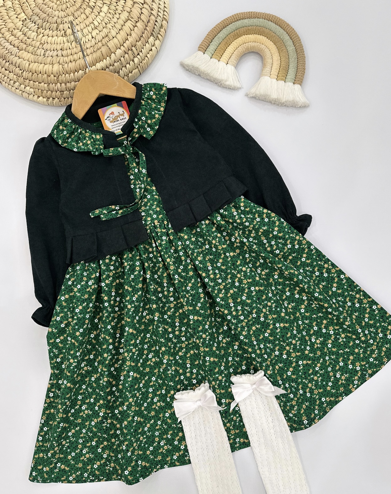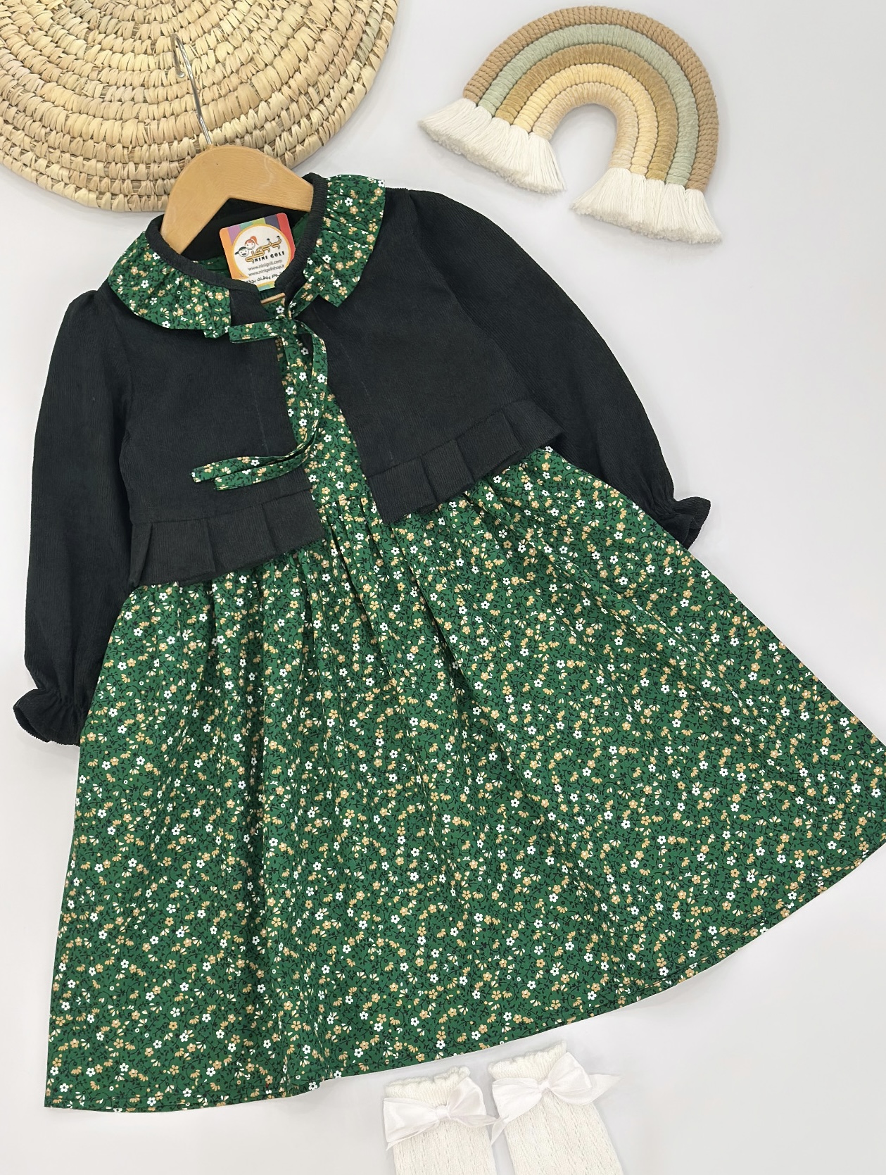 کت و سارافون دلوین کد ۳۱۷۸ سایز۱/۲/۳/۴ کوچک و ۱/۲/۳/۴ بزرگ واسه۲سال تا ۱۳سال جنس سارافون کتان تافته درجه یک وکت مخمل کبریتی اعلا
