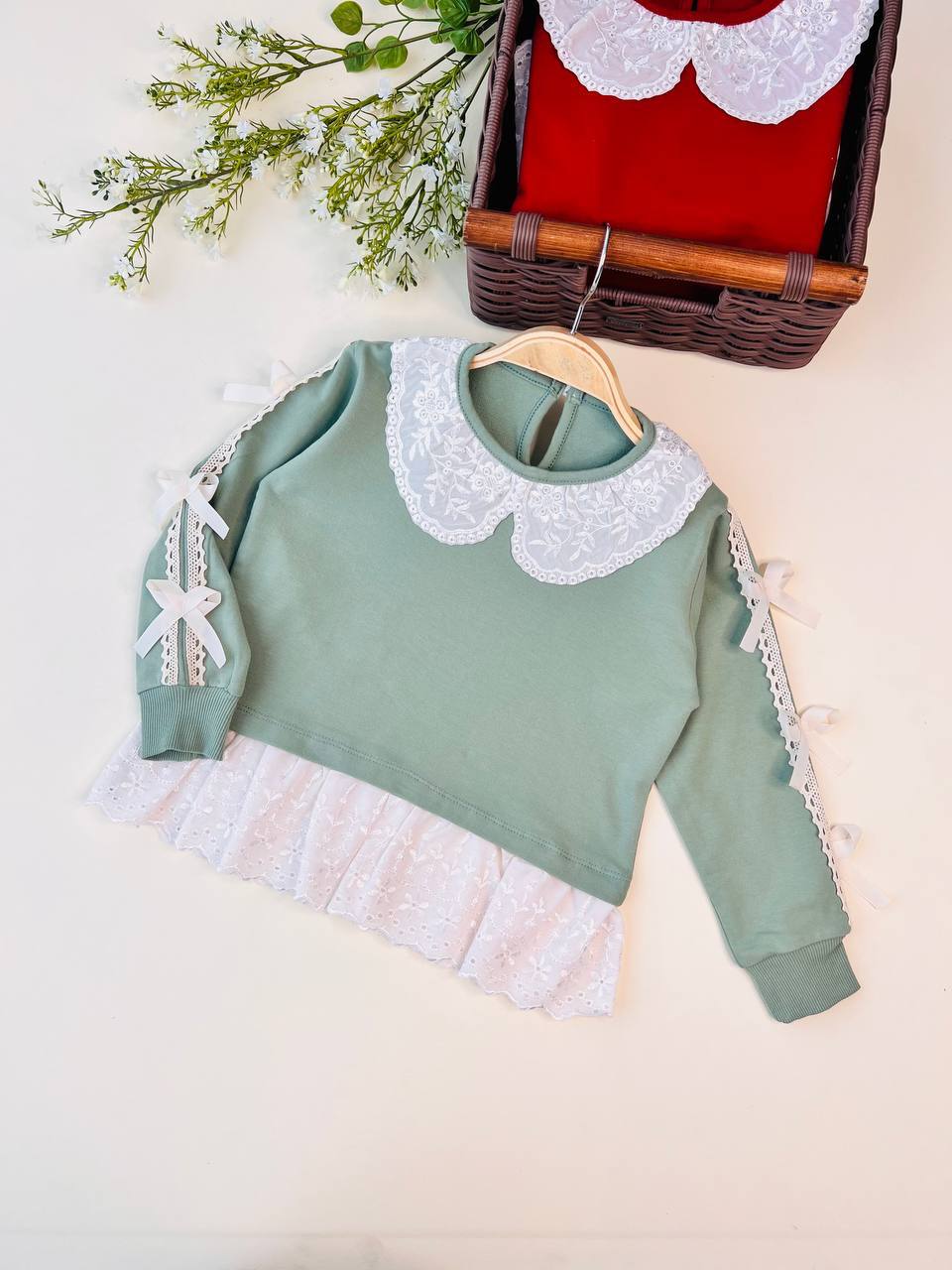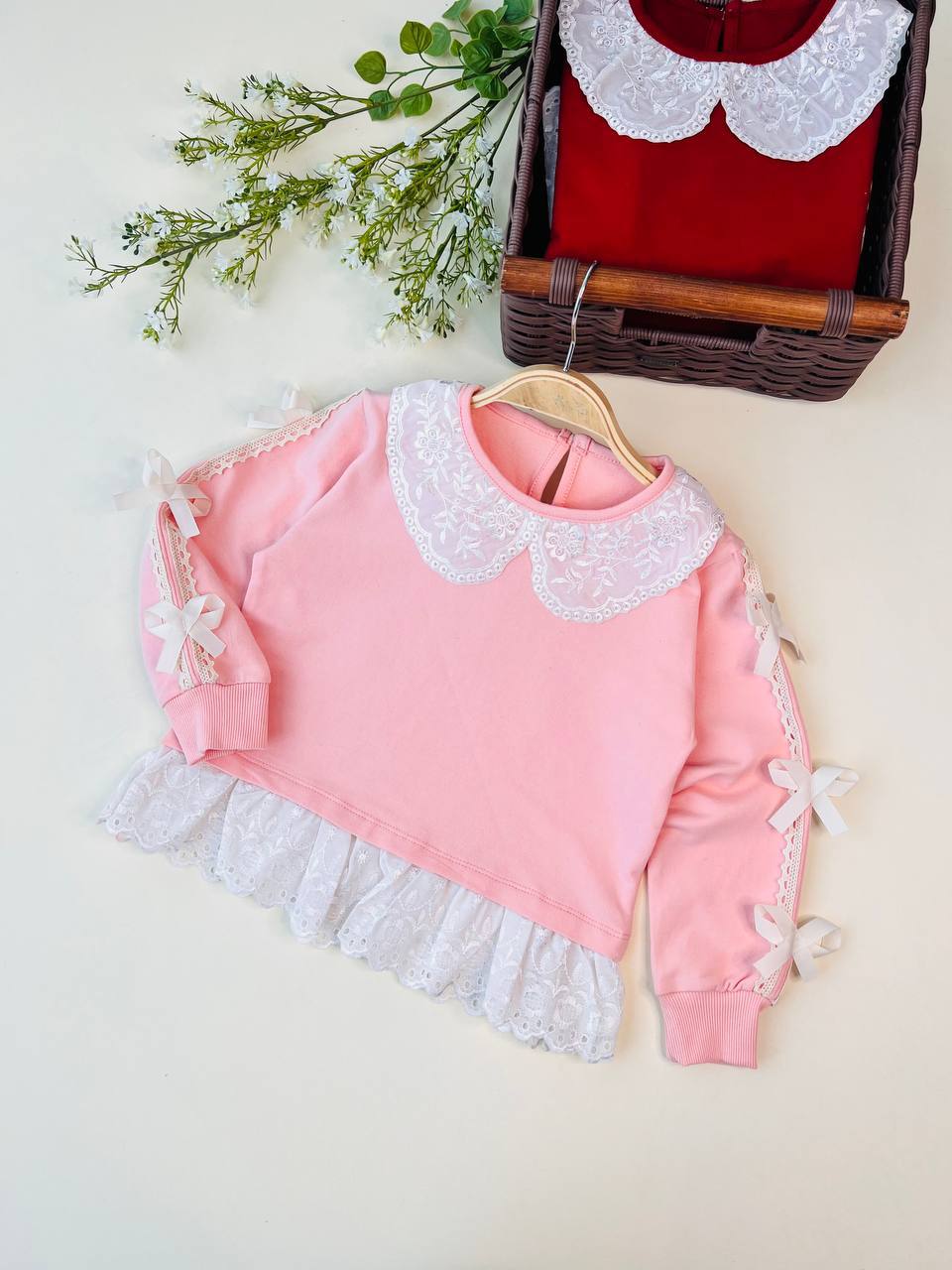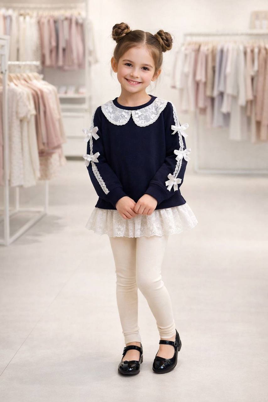تونیک دلسا کد ۳۲۱۹ سایز۴۰/۴۵/۵۰/۵۵ مناسب ۲سال تا ۹ سال جنس دورس پنبه باکیفیت و دانتل کار شده